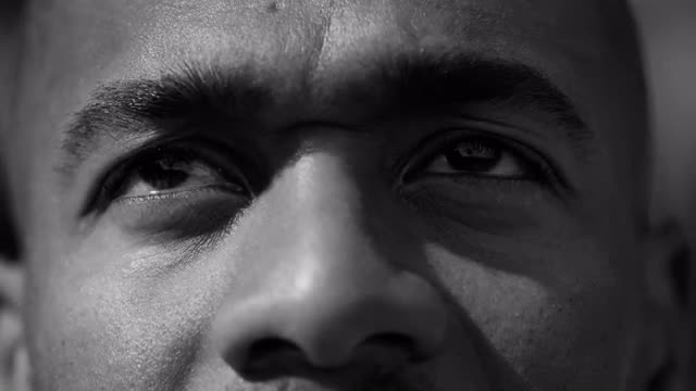 372489 - One on one street basketball; extreme closeup of players eyes looking at camera