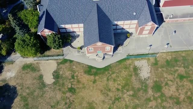 > Aerial view of sleeping buildings and complexes with yard and playground