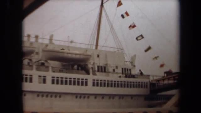 > 1971: flags from various countries hang on a line on ship LONG BEACH CALIFORNIA