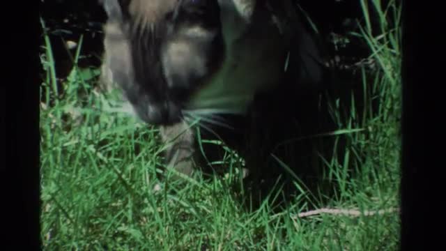 1984: a cat eating grass and walking around CALIFORNIA