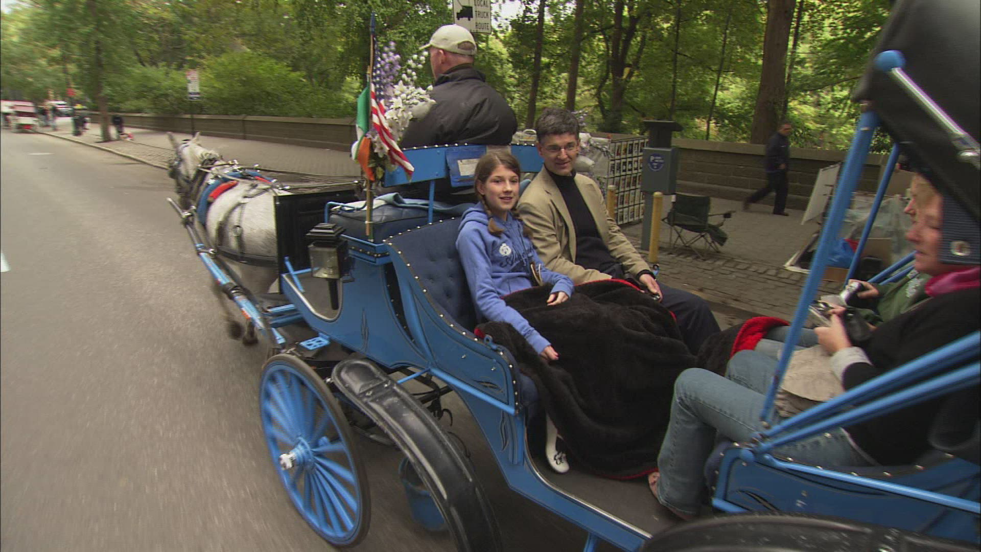 > 1984: the horse cart walking on the side of pumpkin field, with hay-man and a hut. CALIFORNIA