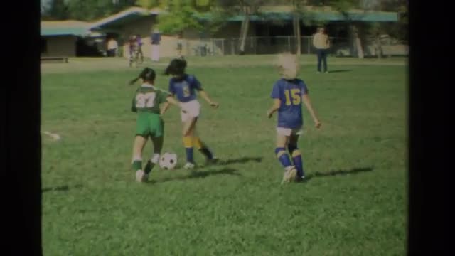 > 1984: a group of girls playing face to face on a hard-fought soccer match CALIFORNIA