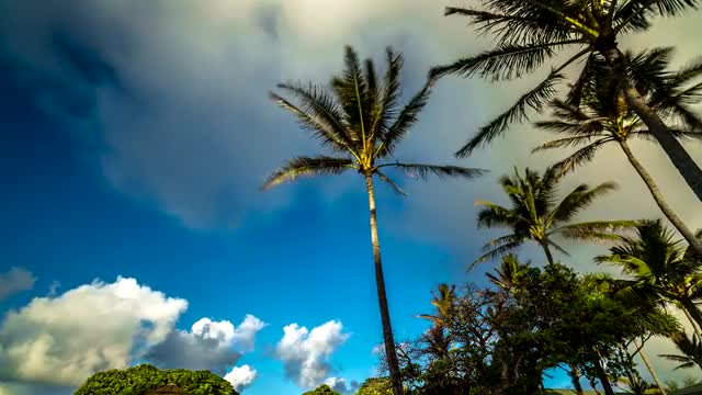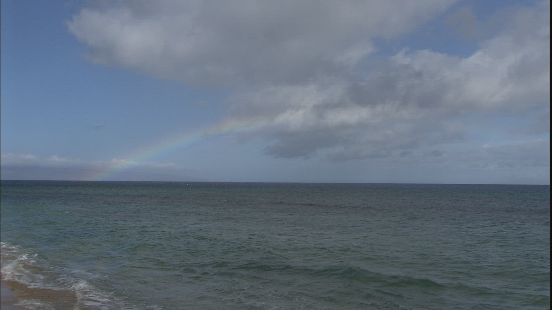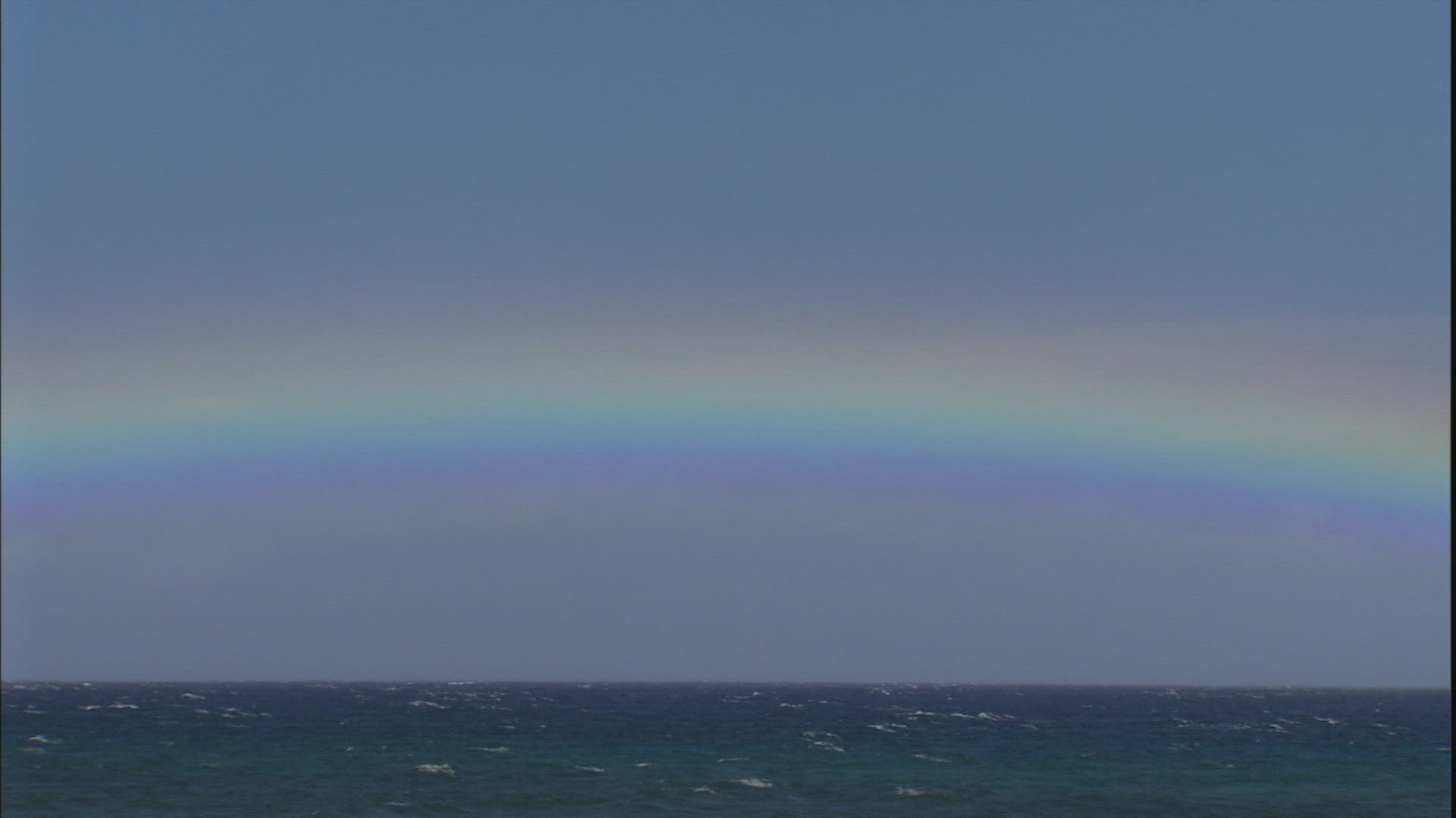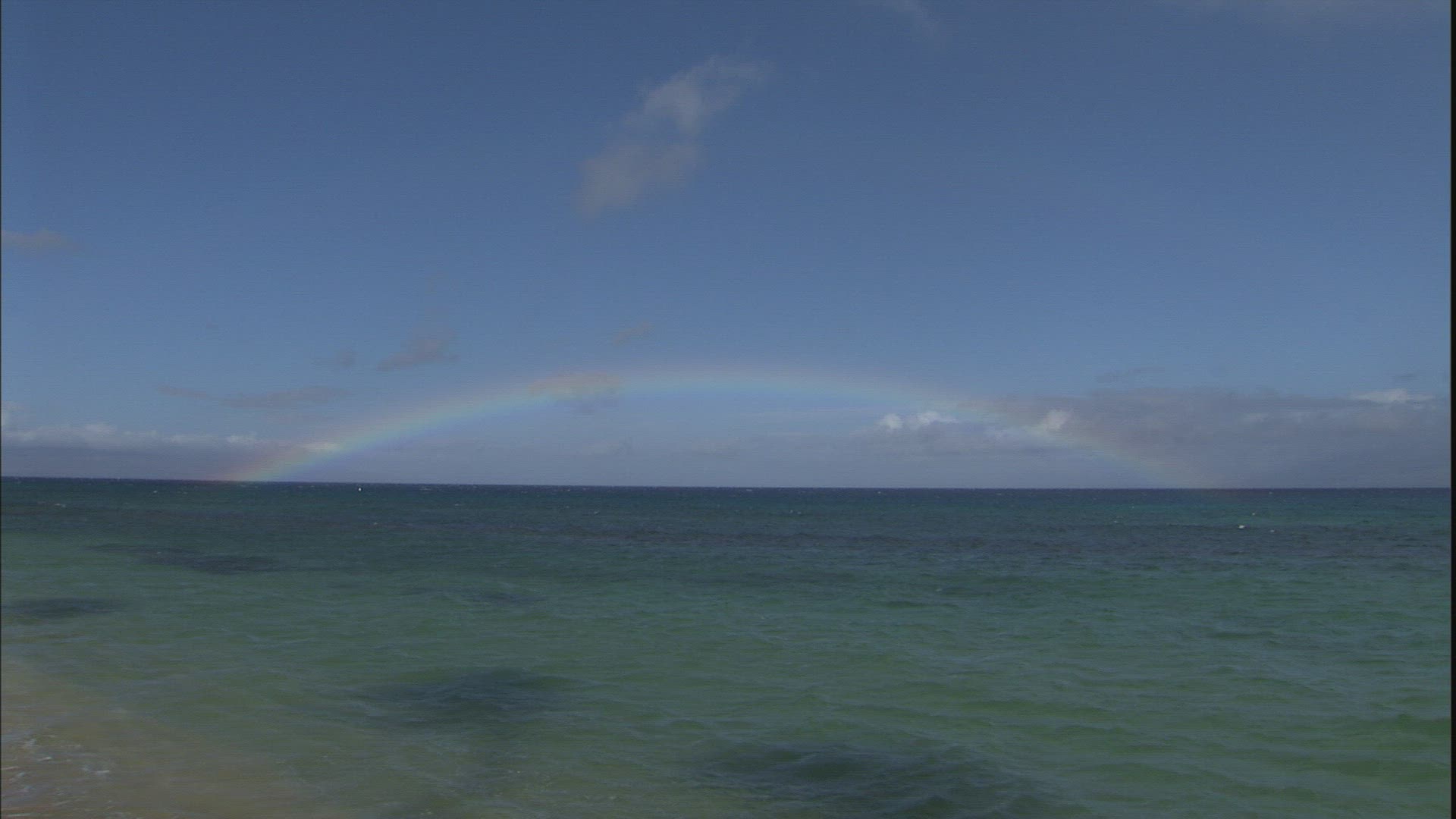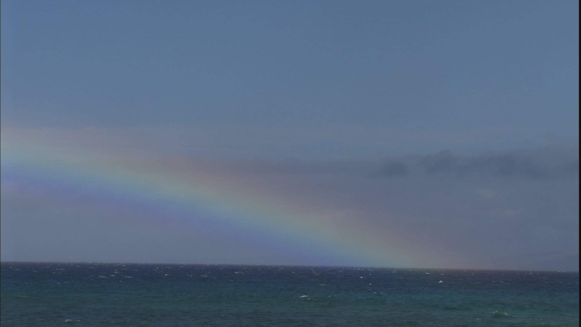 > View of rainbow against blue sky with clouds in Indian Ocean, Mauritius Island