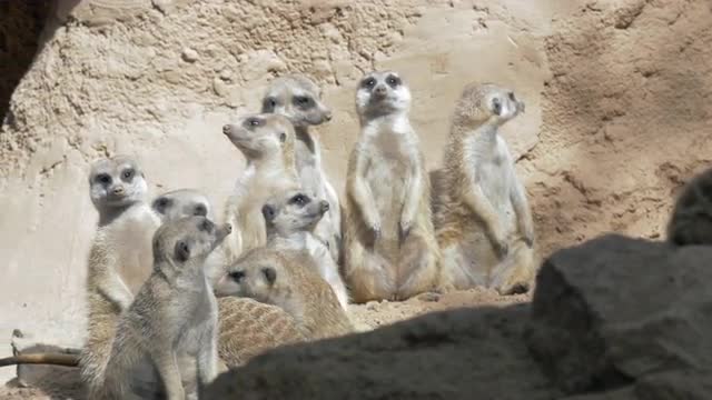 Group of several meerkats being on their guard to warn the mob if danger is coming