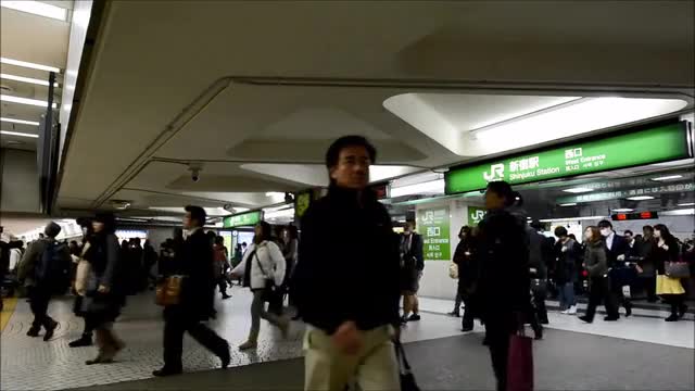 > 1984: a crowd of asians pass through the stone gate of a potted plant garden HONG KONG