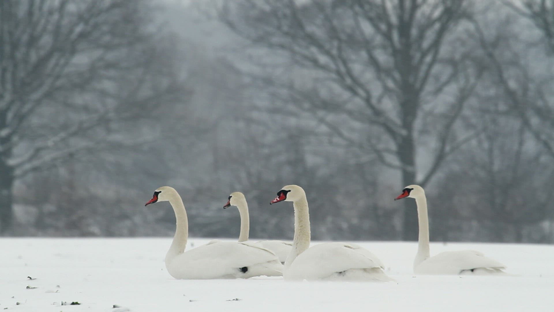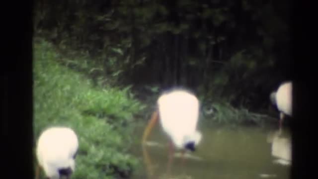 > 1984: a group of white swans walking around in water looking for food. THAILAND