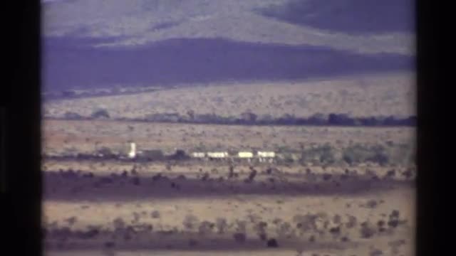 > 1983: a very far view of some sort of industrial company in the center of a dry field. KILAGUNI KENY