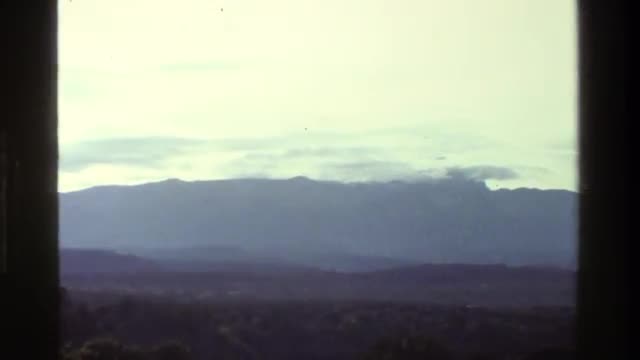 > 1983: forested hills stretch out from the base of a mountain range that reaches into the clouds KENY