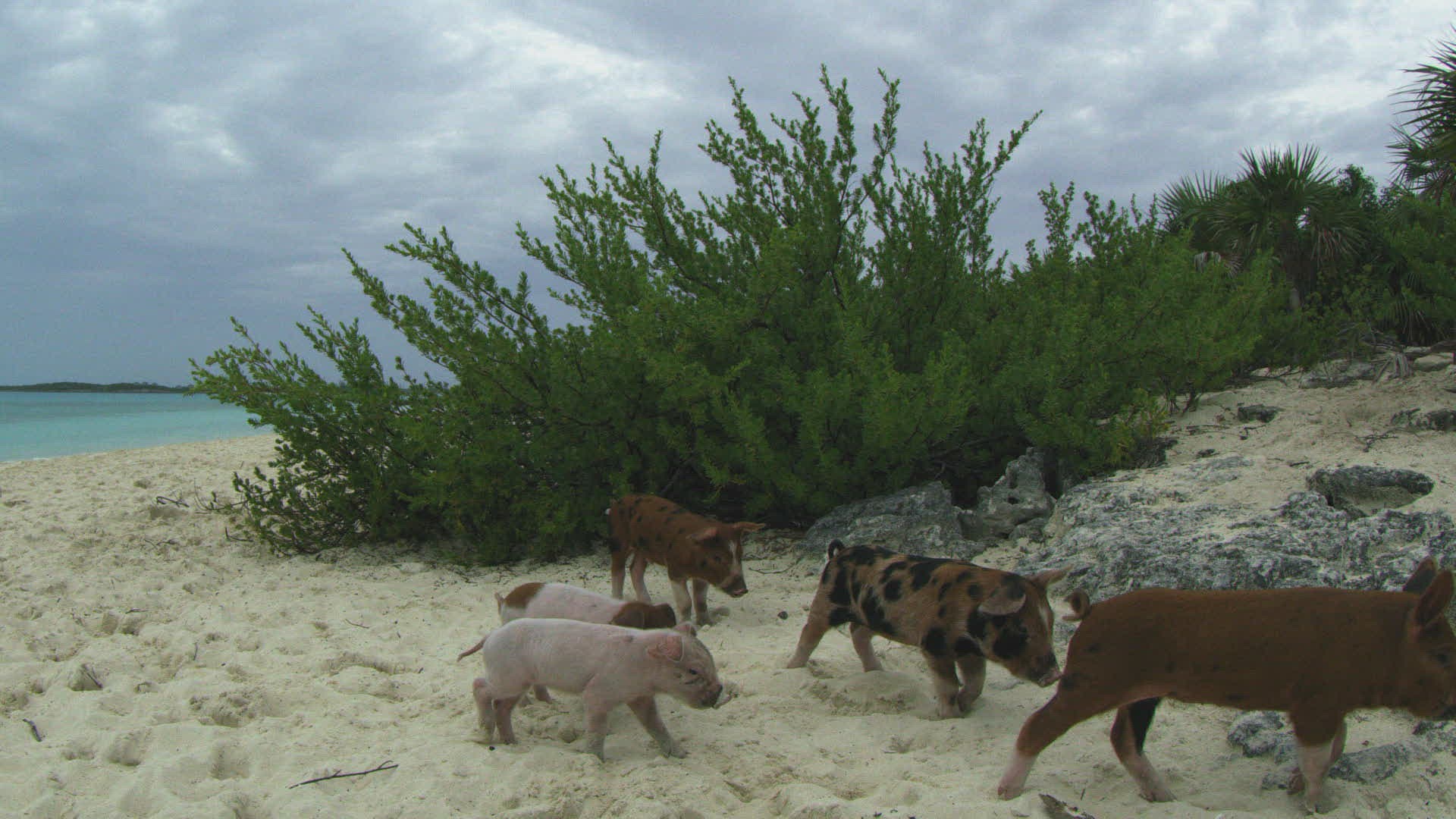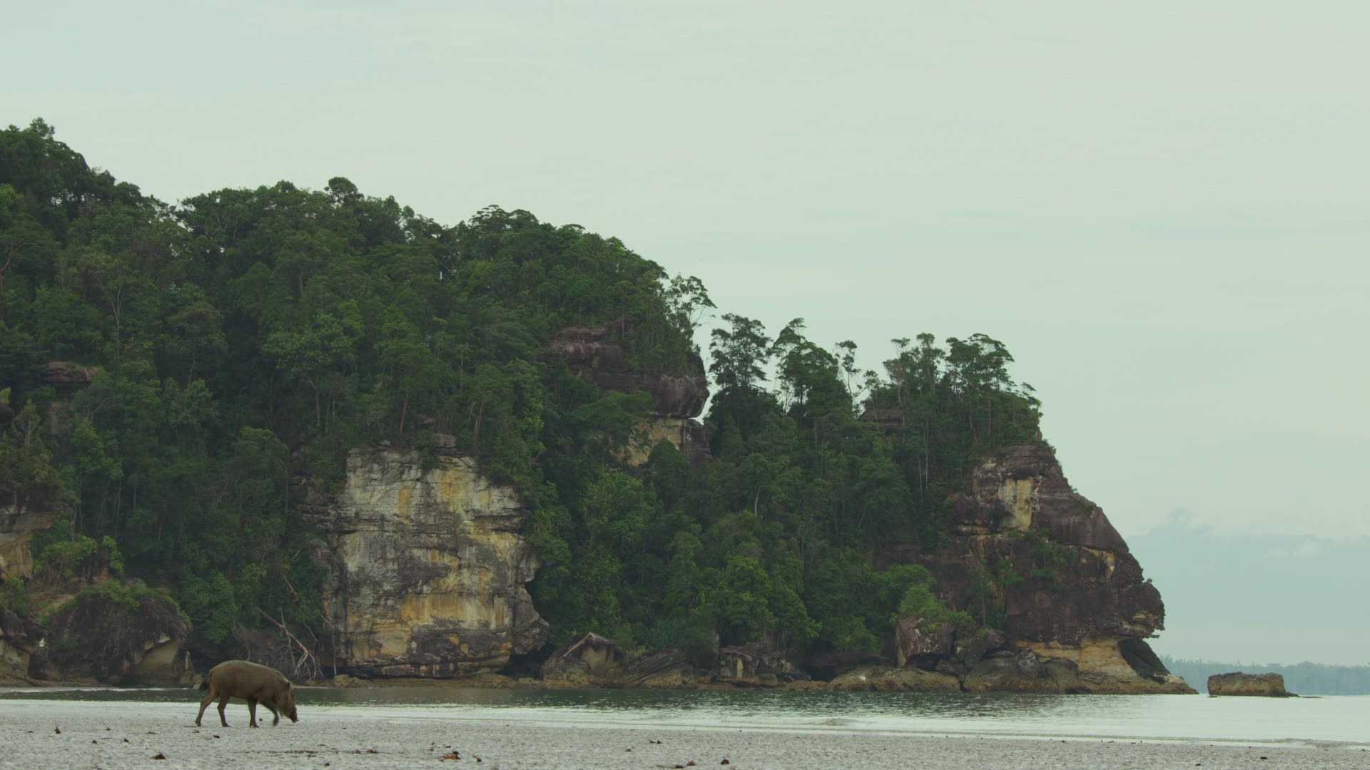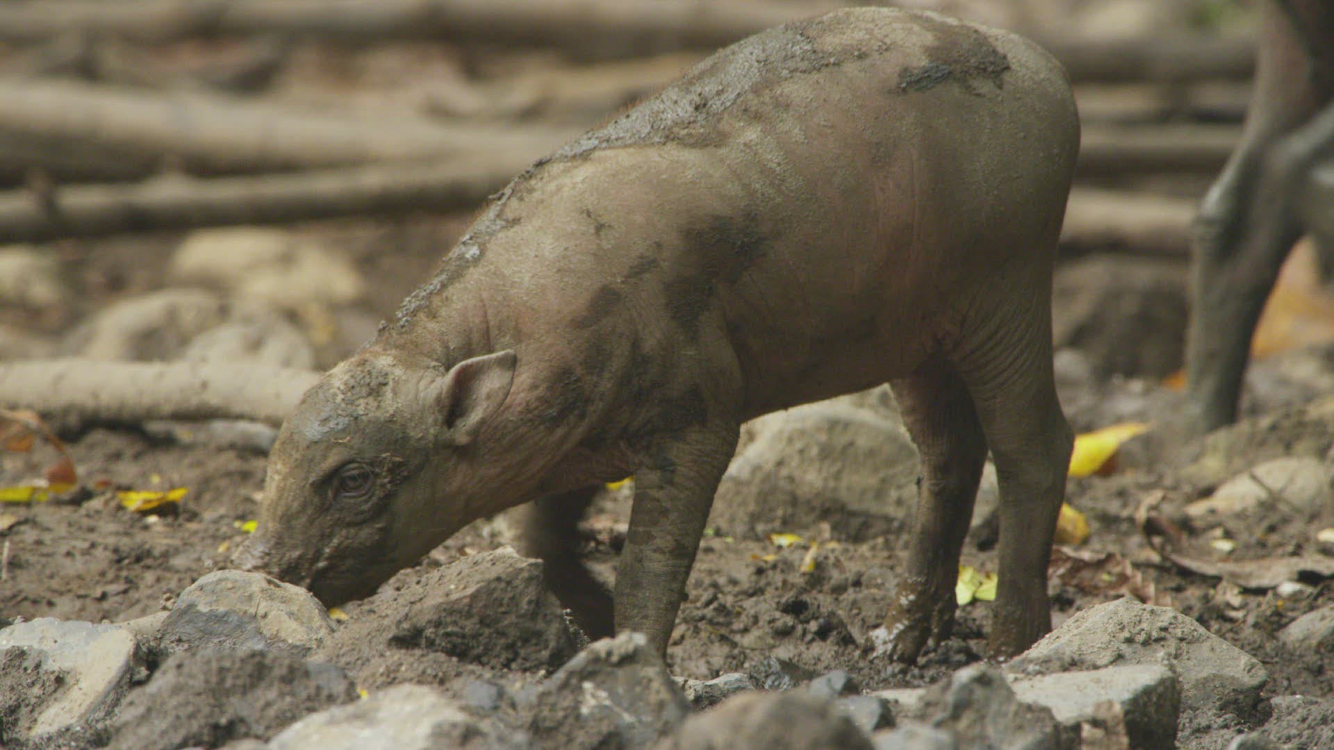 > 1983: a wild pig scratching his back and walking around a rock in a desert KENYA