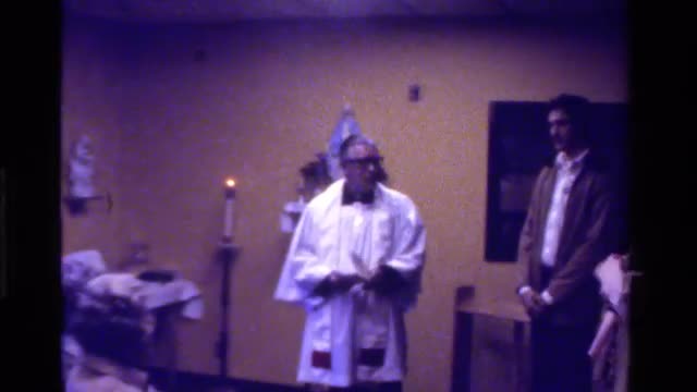 1975: a mother holding her baby next to a priest CALIFORNIA