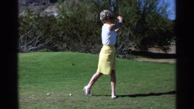 1976: a person swings a golf stick to try to hit the ball really far LAGUNA HILLS CALIFORNIA