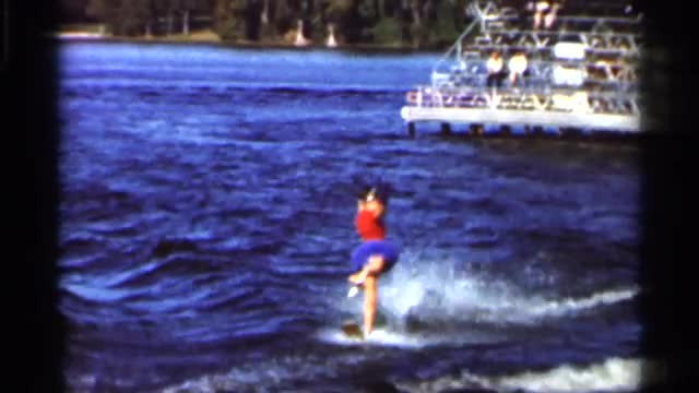 > 1977: enjoying in the water by surfing with friends in a boat joyfully LAKE ELSINORE CALIFORNIA