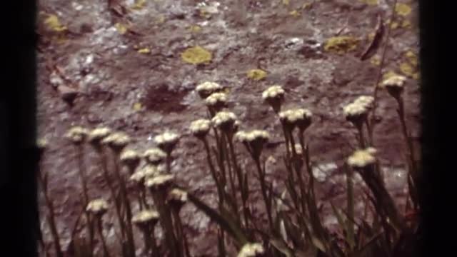 > 1975: a group of wild flowers and other plant foliage on the side of a rocky mountain. AGATE SPRINGS