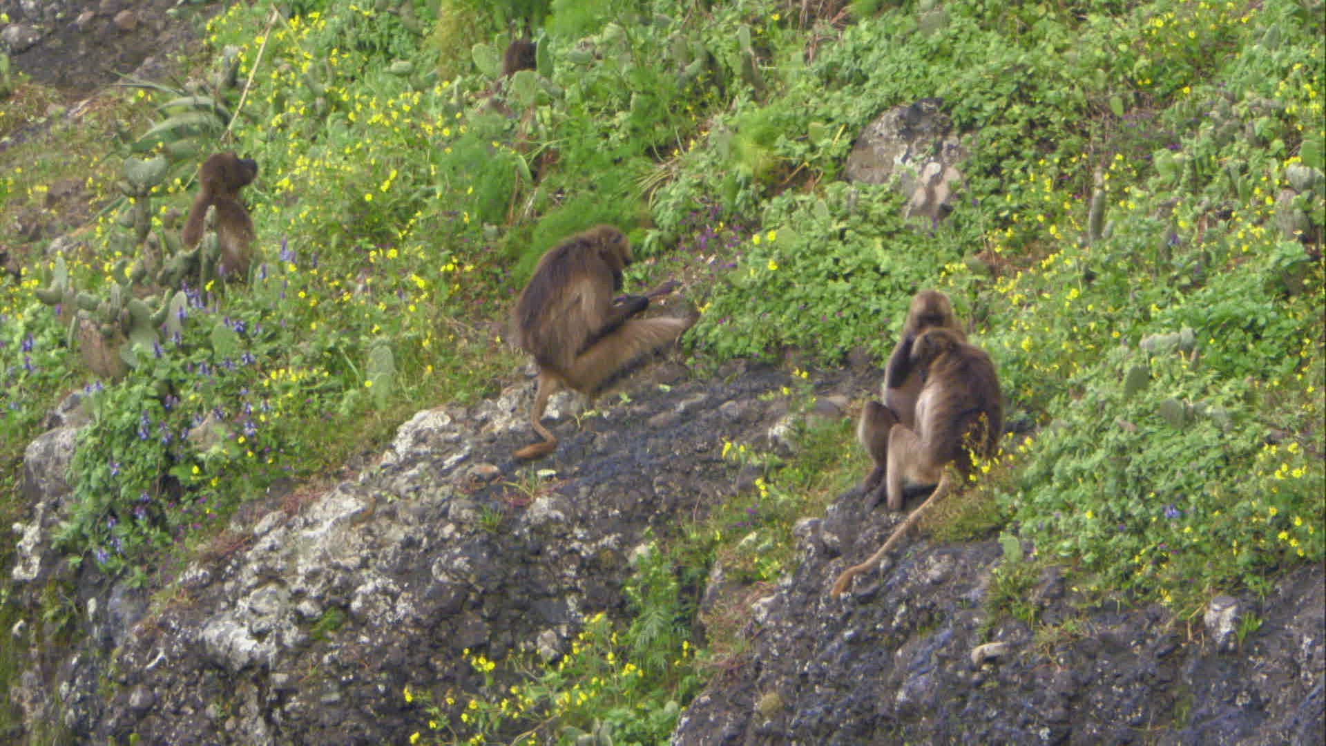1975: a group of wild flowers and other plant foliage on the side of a rocky mountain. AGATE SPRINGS