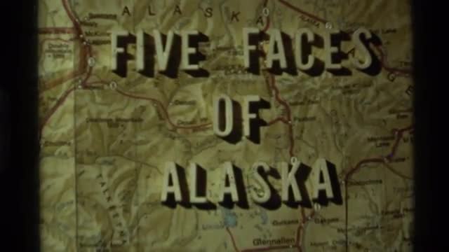 > 1977: sign: five faces of alaska with a partial map of alaska behind the words ALASKA
