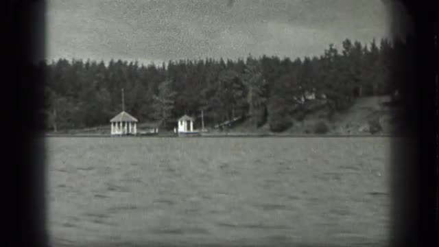 > 1977: a motorized boat makes its way across choppy waters GLACIER BAY ALASKA