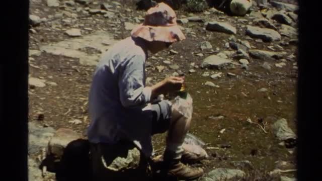 > 1978: a man with a cap is sitting alone and eating something LAKE TAHOE CALIFORNIA