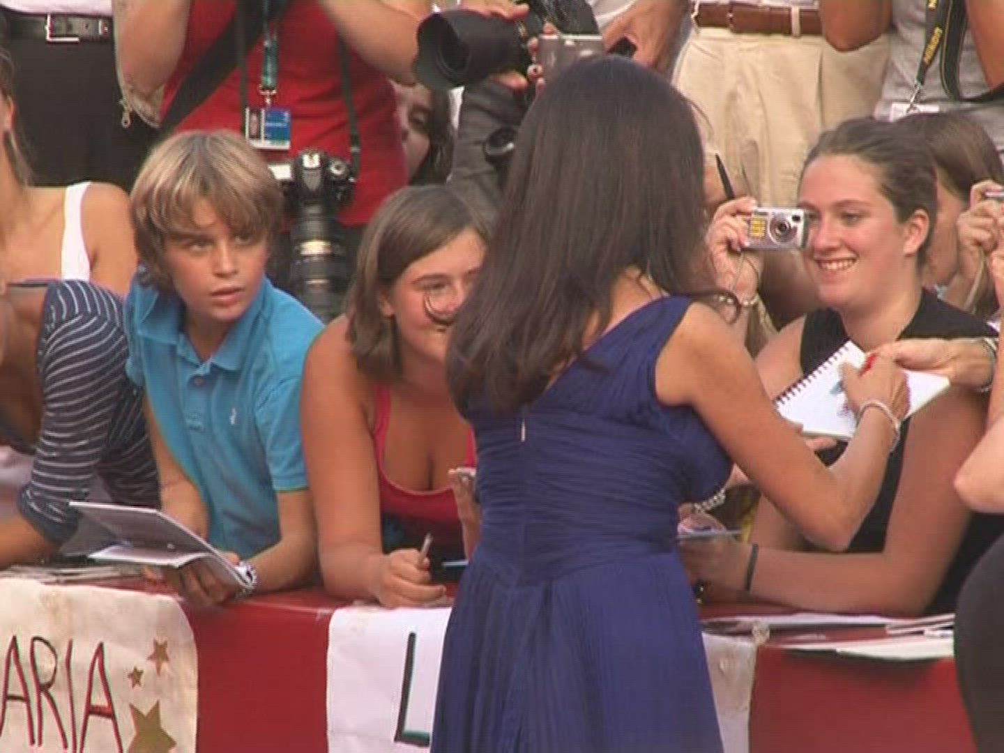 > 1967: a girl in red dress waving to large crowd who gathered to watch LOS ANGELES CALIFORNIA