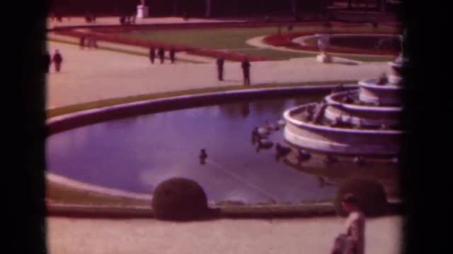 > 1939: number of people are moving around a large pool of water pond PARIS FRANCE