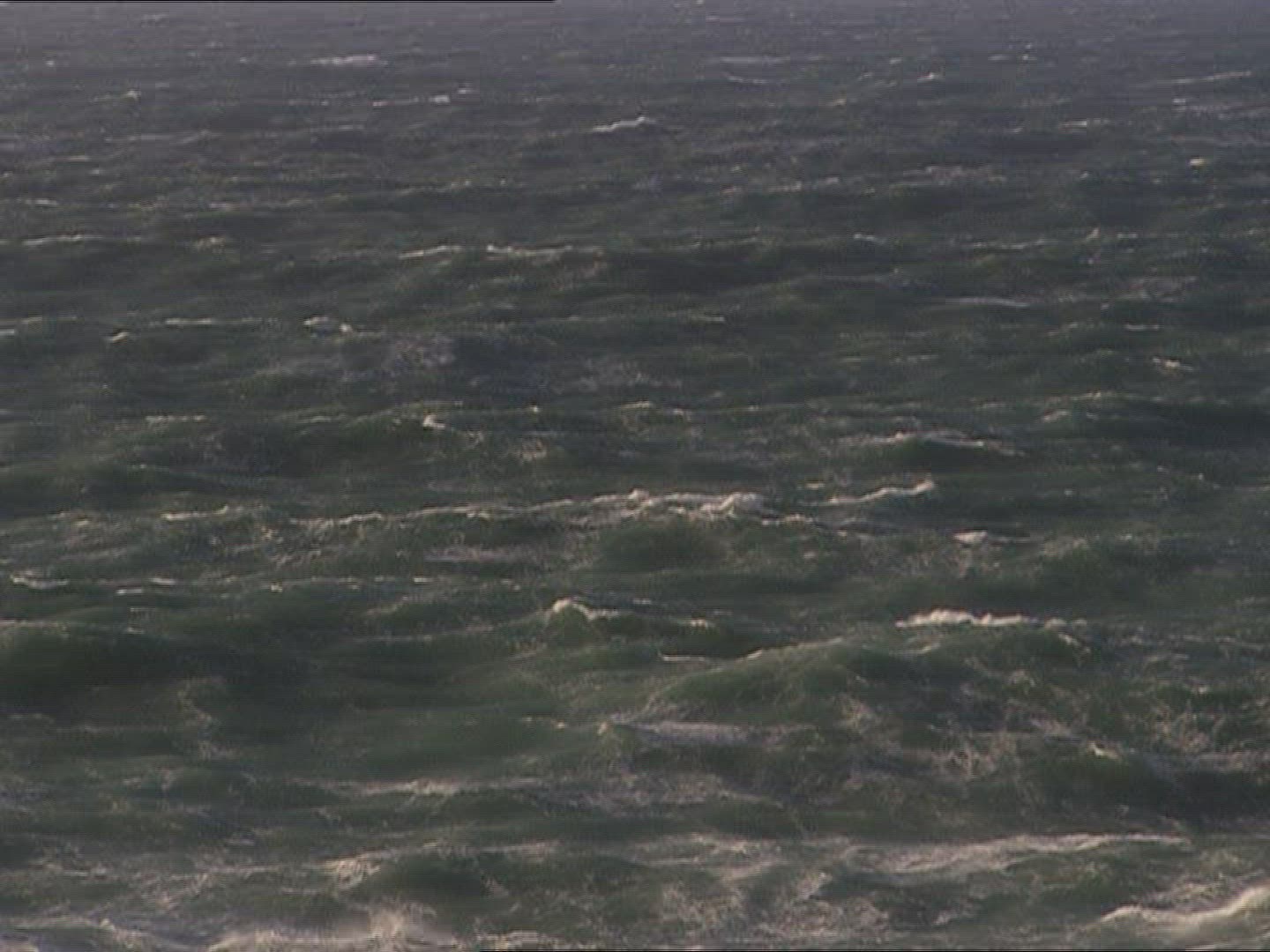 Slow motion view of woman silhouette in the stormy Atlantic Ocean against grey sky, Spain, Gran Canaria Island