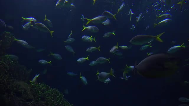 BANGKOK, THAILAND - NOVEMBER 02, 2015: Woman with tablet computer taking shots of sea animals swimming overhead in the underwater tunnel of Siam Ocean World oceanarium