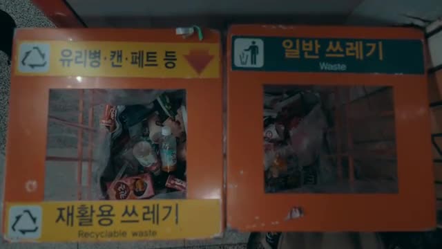 SEOUL, SOUTH KOREA - OCTOBER 22, 2015: Slow motion shot of throwing cardboard coffee cup into the recyclable waste container