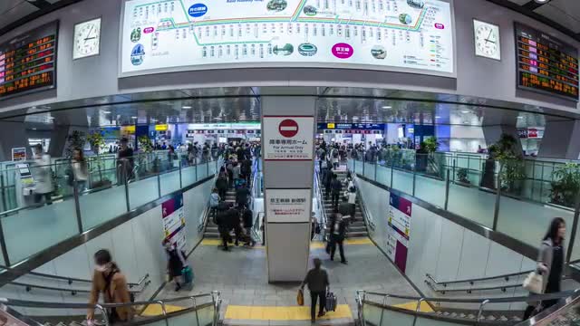 HONG KONG - NOVEMBER 09, 2015: Slow motion shot of a woman holding a plastic bag with goldfish in crowded street. Stress in the city concept