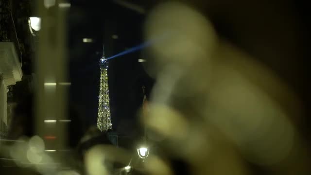 The Eiffel Tower at night.