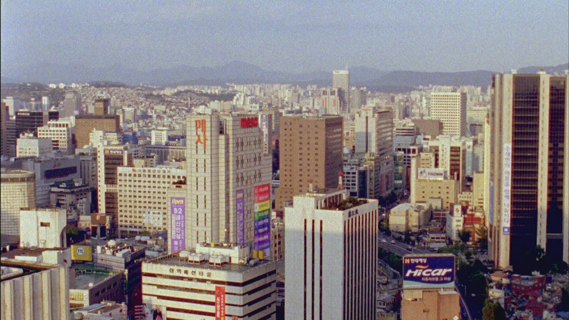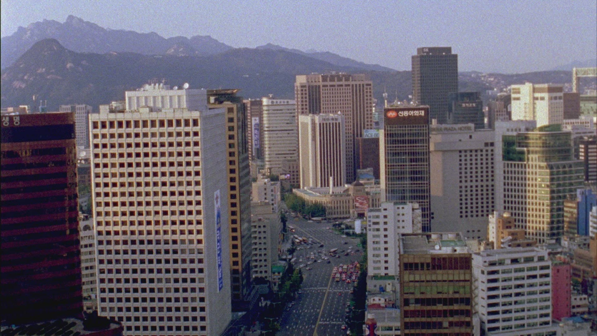 > In city Seoul, South Korea at the big crossroads passing cars
