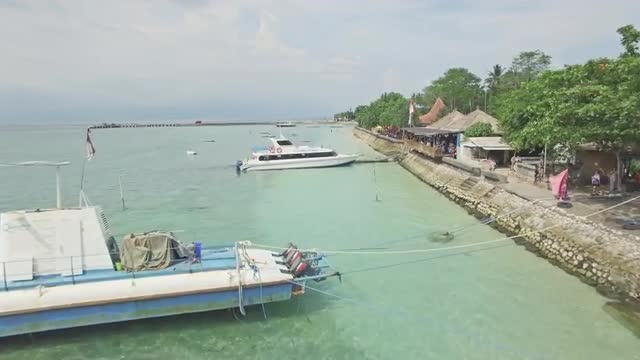 Nusa Penida Harbour Bali Tropical Nature Boats Aerial 4k