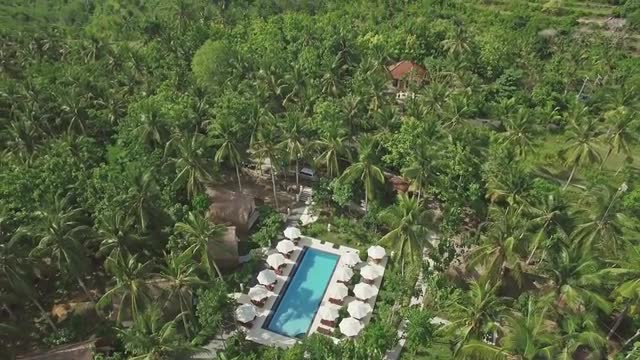 Aerial footage of a beautiful resort in Nusa Penida, Indonesia.