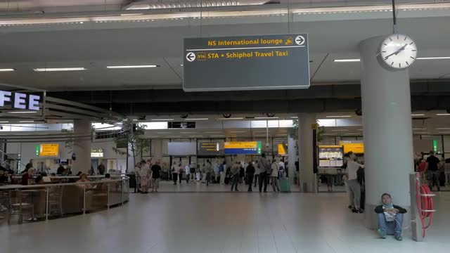 > People with baggage and carts in airport terminal