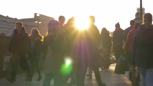 SAINT-PETERSBURG, RUSSIA - MARCH 26, 2016: In a sunny day on the street walking people. In the background seen building. Russia is visited by more than 20 million turists annually