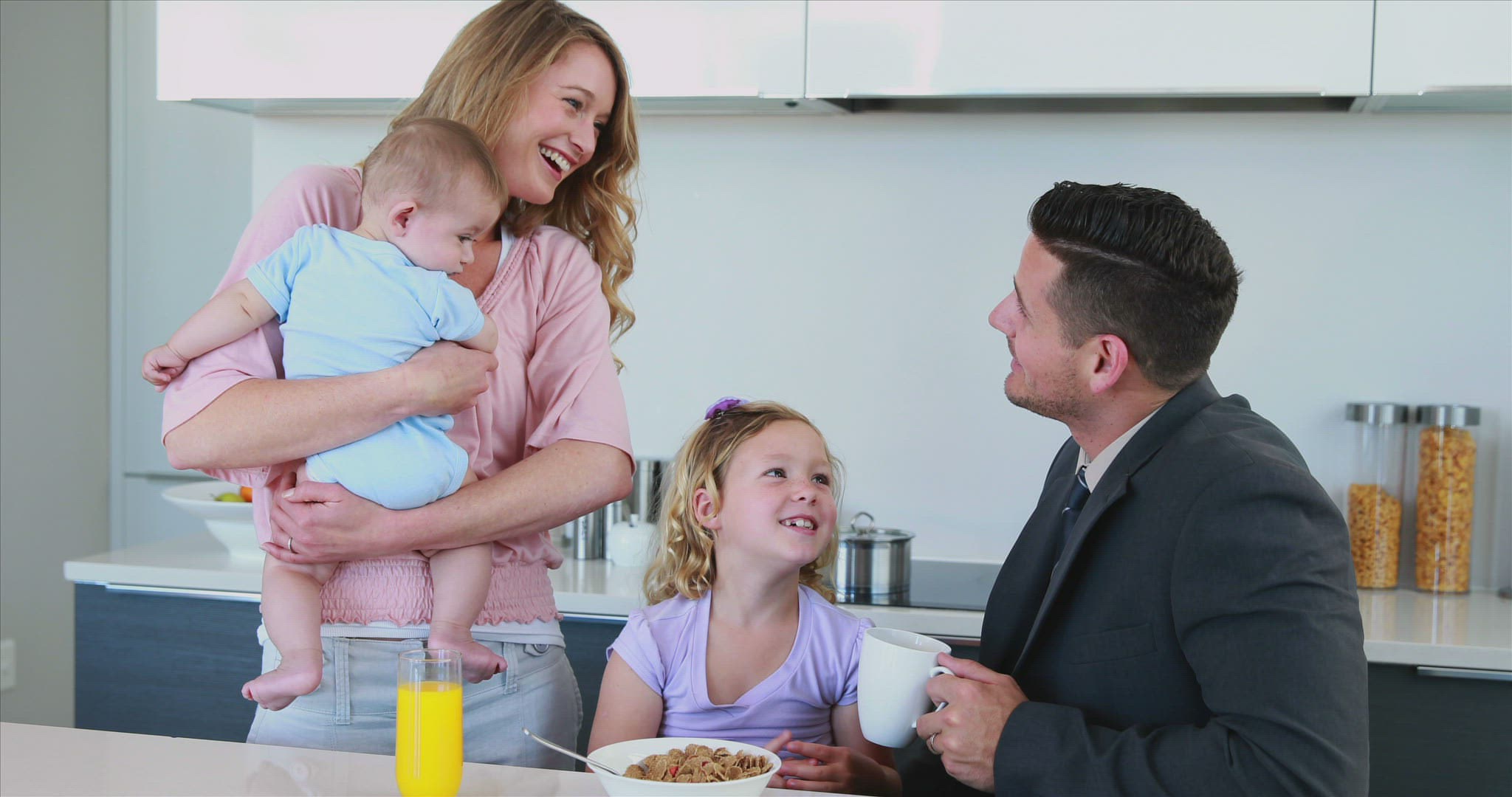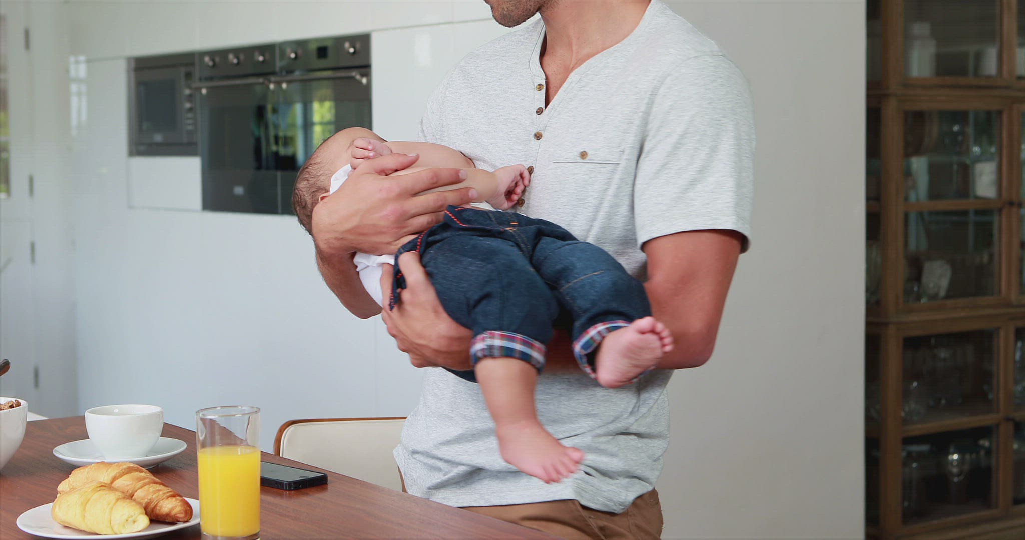 Mother Feeding Her Baby Boy With a Spoon. Mother Giving Food to Her Adorable Two Year Old Child While he Watching Cartoons