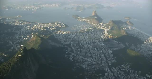 670285 - Aerial shot of the Brazilian flag in the mountains over Rio de Janeiro
