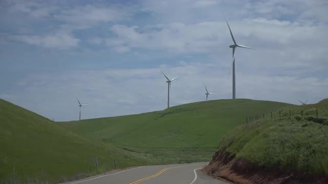 View of The Altamont Pass Wind Farm, located in the Altamont Pass of the Diablo Range in Northern California. It is one of the earliest wind farms in the United States. At one time the largest wind farm in the world in terms of capacity. Altamont Pass is still the largest concentration of wind turbines in the world, with a capacity of 576 megawatts.