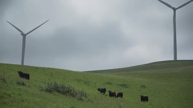 View of The Altamont Pass Wind Farm, located in the Altamont Pass of the Diablo Range in Northern California. It is one of the earliest wind farms in the United States. At one time the largest wind farm in the world in terms of capacity. Altamont Pass is still the largest concentration of wind turbines in the world, with a capacity of 576 megawatts.