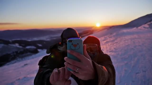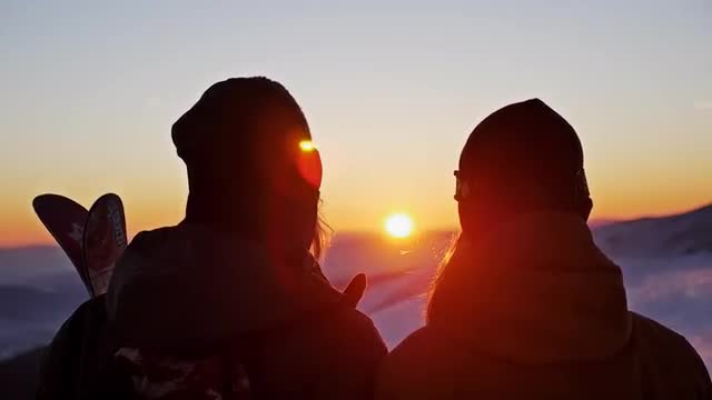 686240 - Winter Sunset Admire Couple Slowmotion