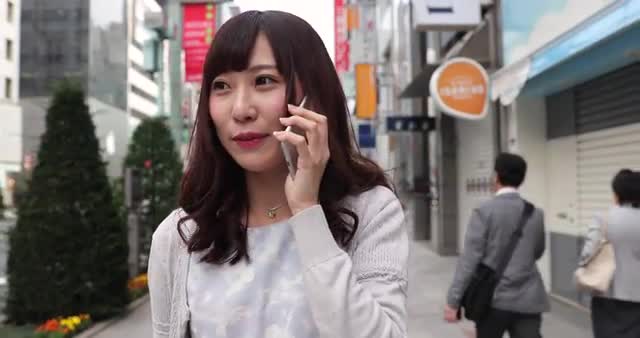 Footage of young Japanese woman on the phone walking in luxury area in Tokyo, Japan