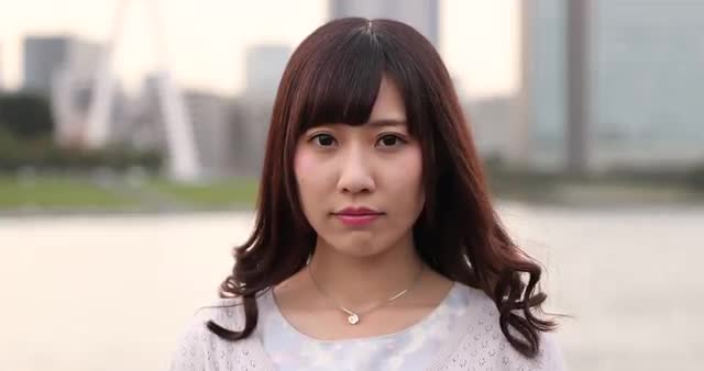 > Portrait of young Japanese woman by a river downtown Tokyo, Japan