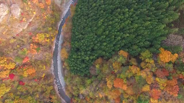 Aerial footage of Autumn colors at Okutama, Tokyo, Japan
