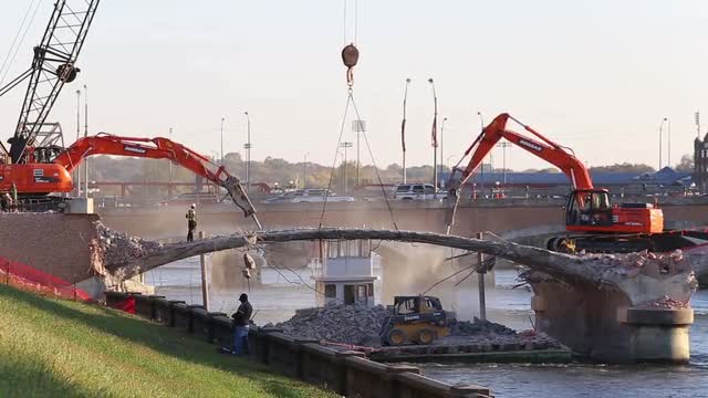 Demolition construction on Grand Ave Bridge, Des Moines, Iowa