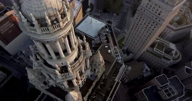 > Stunning aerial view NYC City Hall 360 circle