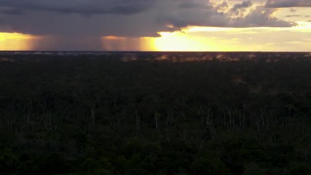 975629 - Rain falling over canopy at sunset_tele tracking.mov