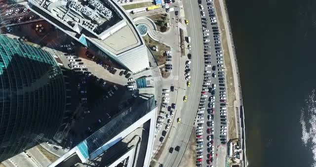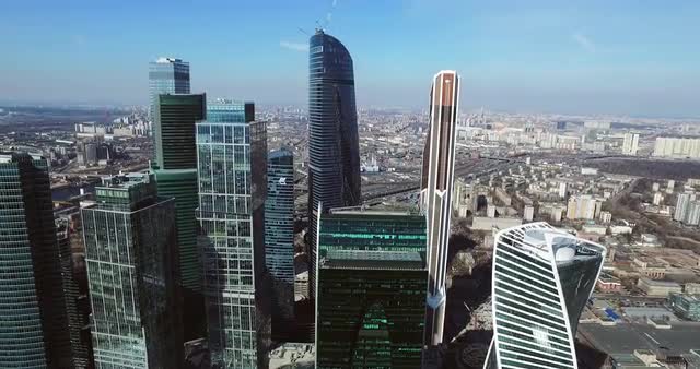 > Moscow City aerial shooting cityscapes buildings