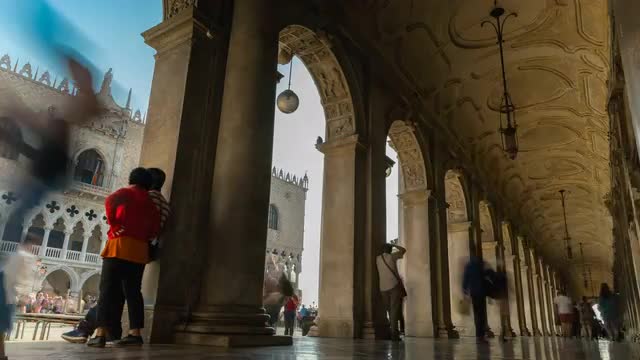 Timelapse outside of the Venetian Gothic style Doge's Palace (Palazzo Ducale) in Venice, Italy.