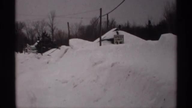 730029 - 1971: snowy day a road covered with snow with a village home covered with snow, forest at back side