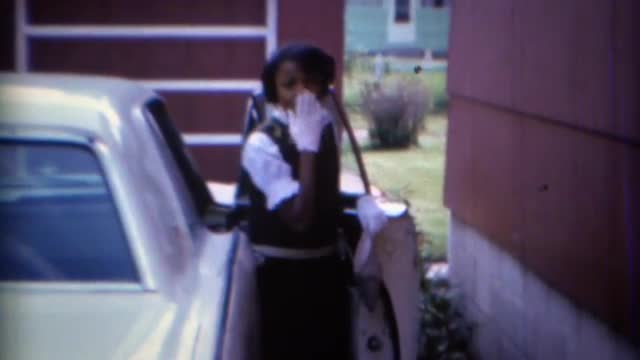 624638 - 1955: women and child wave cowboy hats at each other happily PENNINGTON, NEW JERSEY