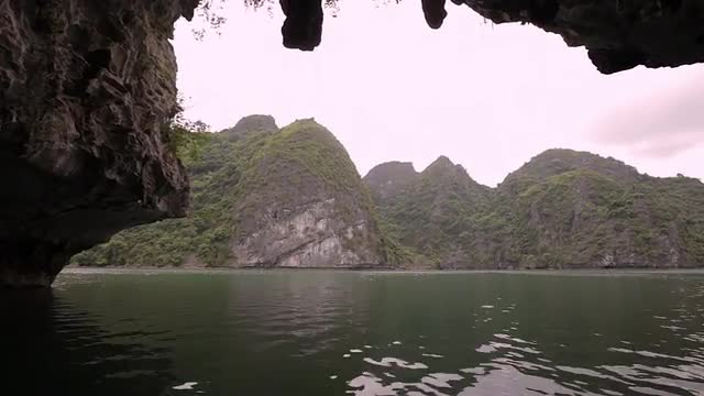 690812 - WS Kayaking through limestone cave in Ha Long Bay / Vietnam