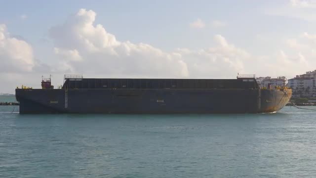 752278 - sunset miami beach boat tow container ship 4k florida usa